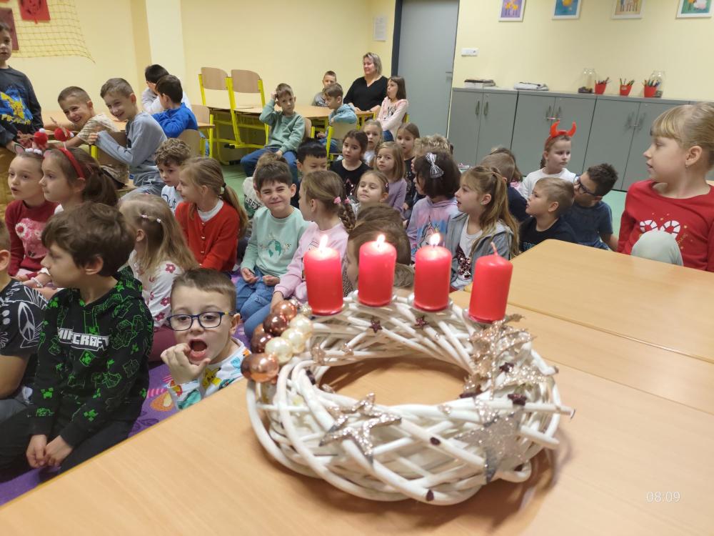 Letošní advent byl v prvních třídách plný zpěvu a tradic. Každé pondělí po adventní neděli jsme se společně sešli, abychom zapálili svíčku na věnci a při tónech klavíru si zazpívali nejoblíbenější koledy. Tyto chvíle klidu a dětského zpěvu nám všem připomněly pravé kouzlo Vánoc. Celé naše sváteční putování jsme zakončili v pátek 19. 12. prohlídkou vánočně nazdobeného města.