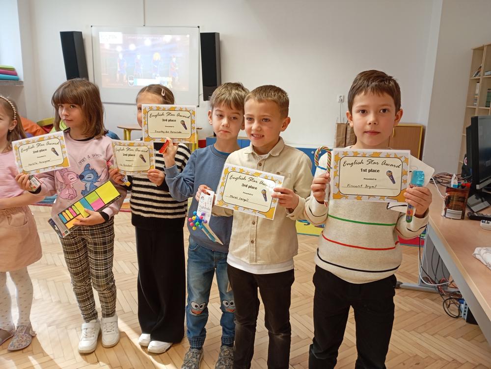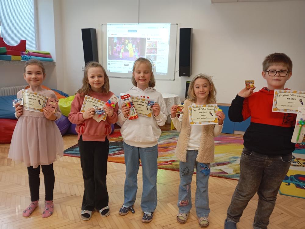 Ve středu 18. 3. jsme pro žáky 1. stupně uspořádaly ve spolupráci se ZŠ Mašovice anglickou soutěž English Star. Celkem se představilo 73 žáků v pěti kategoriích. Děti předvedly scénky, rozhovory, představily své koníčky i zvířata, zazpívaly písničky a nechyběl ani tanec. Za své výkony si zaslouží velkou pochvalu a poděkování za pečlivou přípravu. Velký obdiv patří všem soutěžícím za to, že dokázali překonat trému před porotou i spolužáky. Věříme, že se v tak hojném počtu setkáme i příští rok. Už teď se těšíme na další skvělé výkony, angličtinu, energii i dobrou náladu, která provázela celé středeční dopoledne!