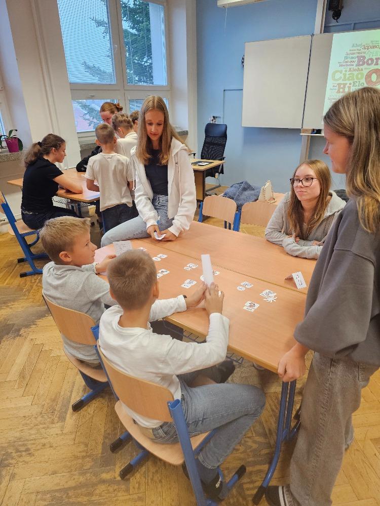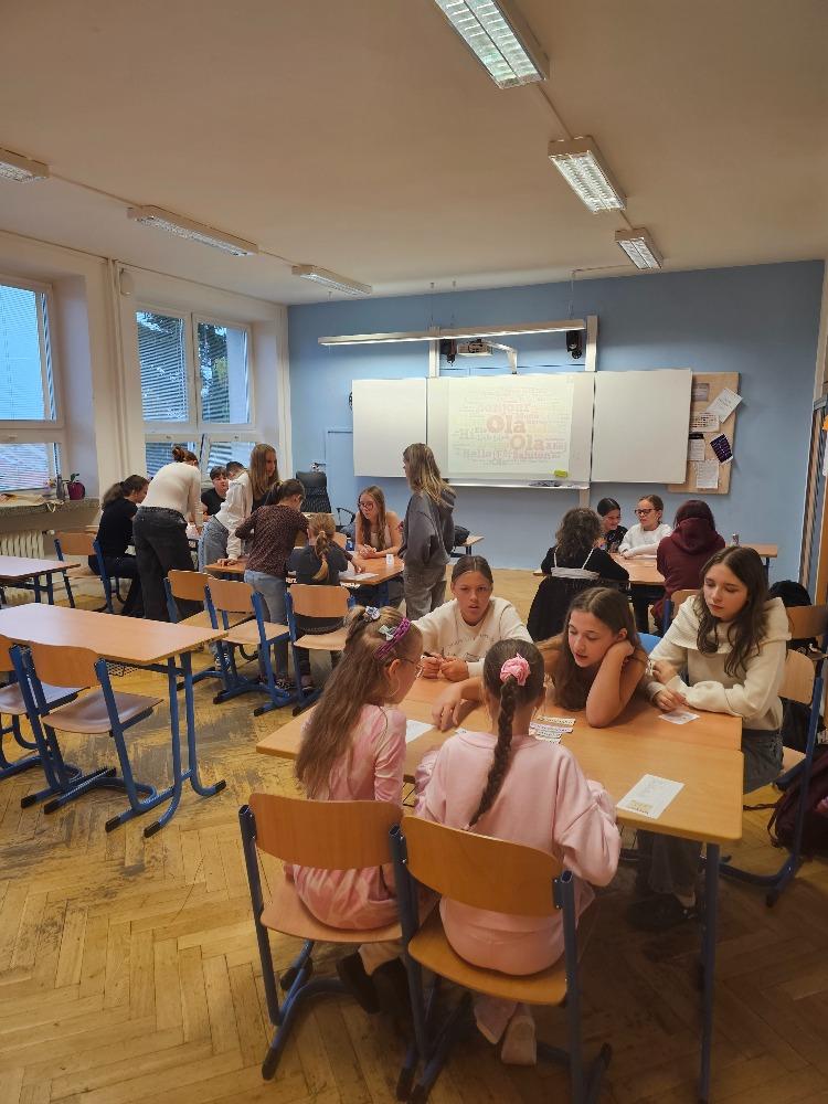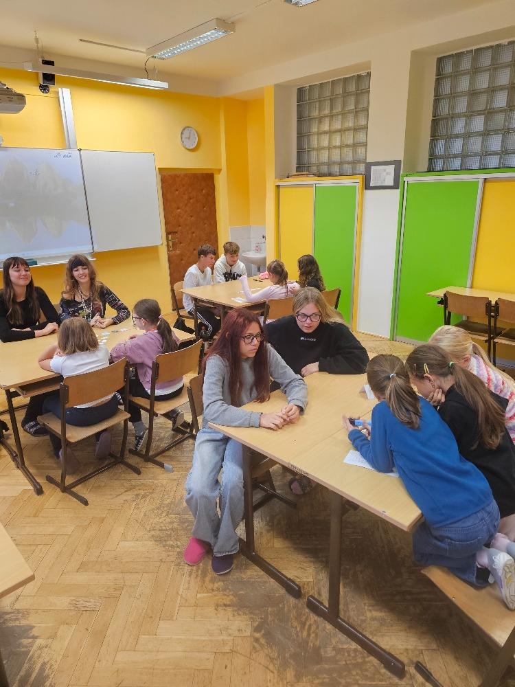 Evropský den jazyků, který se každoročně slaví 26. září, připomíná jazykovou a kulturní rozmanitost Evropy a zároveň podporuje celoživotní učení cizí řeči. Naši deváťáci se této výzvy chopili s nadšením a připravili pro žáky 2. – 5. ročníků pestrá stanoviště plná her, soutěží a aktivit v různých evropských jazycích. Mladší spolužáci si mohli vyzkoušet základní slovíčka, fráze, ale i zajímavosti z kultury jednotlivých zemí. Děti si dopoledne velmi užily, odnesly si nové vědomosti i zážitky a ocenily kreativitu starších spolužáků. Celá akce se nesla v přátelské a veselé atmosféře a potvrdila, že učení jazyků může být nejen užitečné, ale i zábavné.