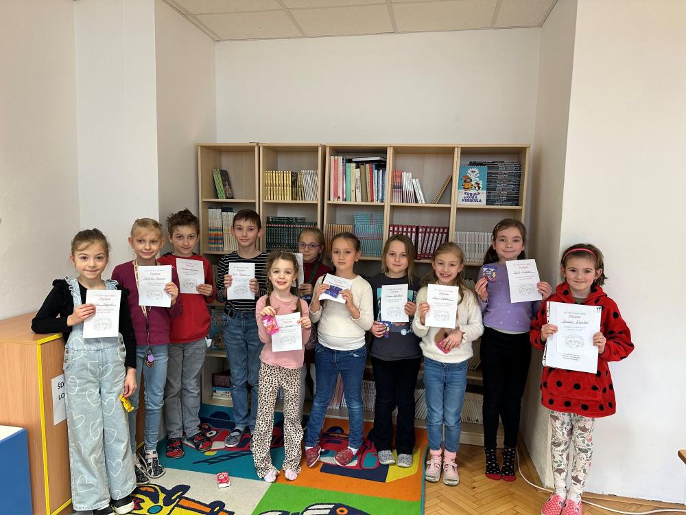 Dne 9. 2. 2026 proběhla v prostorách čítárny recitační soutěž prvního stupně. Zazněly roztomilé básničky malých prvňáčků, kteří se teprve učili překonávat trému, srdnaté výkony již zkušenějších druháků a třeťáků, až po ostřílené výkony žáků čtvrtých a pátých tříd, kde už místo básniček zazněly úryvky z knih známých i méně známých autorů.