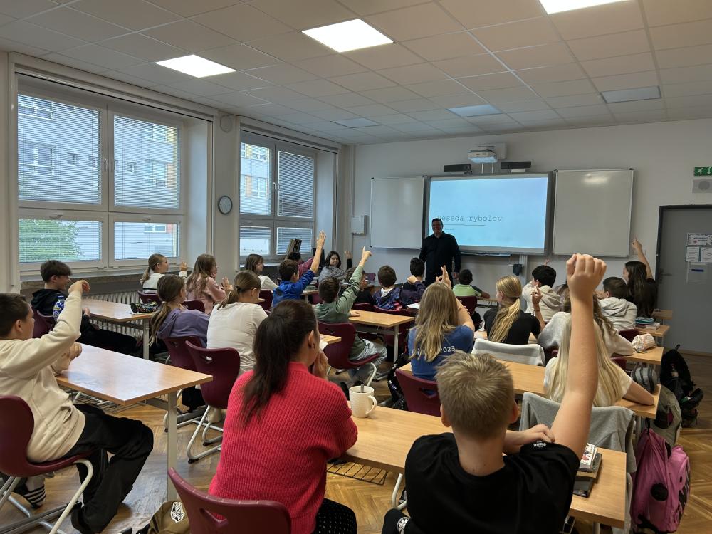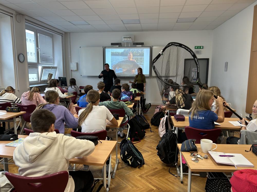 Mohli jsme si tak nejen zopakovat své znalosti, ale také se dozvědět mnoho zajímavostí přímo z praxe. Výuka probíhala v tandemu, byla doplněna prezentací, soutěžními úkoly i ukázkou pomůcek využívaných při sportovním rybářství. Aktivní zapojení všech žáků, hravá forma a názornost ukázek nám přispěly k tomu, že se učivo stalo pro všechny srozumitelnější, zábavnější a zároveň poutavé.