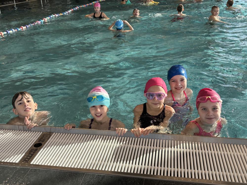 Letošní školní rok třeťáci v hodinách tělesné výchovy absolvují plavecký výcvik v nově zařízeném bazénu v areálu Louka. V příjemném prostředí tráví 90 minut. Žáci jsou rozděleni do skupin podle plaveckých dovedností. Skupiny plavou, cvičí a hrají si ve vodě, mají k dispozici plavecké pomůcky. Děti se naučí základům jako je splývání, správné dýchání do vody, kraulové nohy, poloha na zádech a určitě v následujících hodinách další plavecké styly. Ke konci výuky následují oblíbené relaxační chvilky. Ve skupinách třeťáci poznají i nové kamarády ze čtvrtých tříd naší školy.