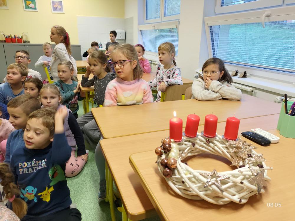 Letošní advent byl v prvních třídách plný zpěvu a tradic. Každé pondělí po adventní neděli jsme se společně sešli, abychom zapálili svíčku na věnci a při tónech klavíru si zazpívali nejoblíbenější koledy. Tyto chvíle klidu a dětského zpěvu nám všem připomněly pravé kouzlo Vánoc. Celé naše sváteční putování jsme zakončili v pátek 19. 12. prohlídkou vánočně nazdobeného města.