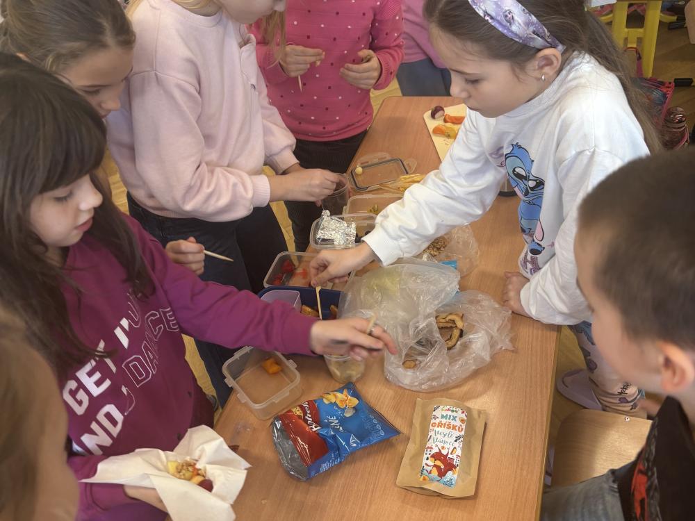 Víte, že člověk má 10 000 chuťových pohárků? Jak vnímají chutě se přesvědčili žáci ze 3. A třídy. Při hře Slepá ochutnávka zkoumali vůni a především chuť jídla. Na výběr bylo ovoce, zelenina, sušenky, oříšky, čokoláda, brambůrky a další dobroty. Vyprávěli také odkud dané jídlo pochází a jakou cestou se dostalo na náš stůl. Zábava pro mlsné jazýčky v hodině prvouky se povedla.