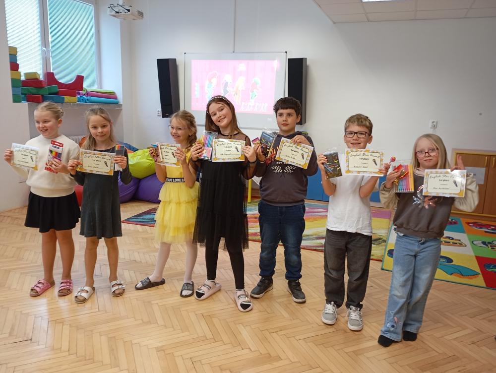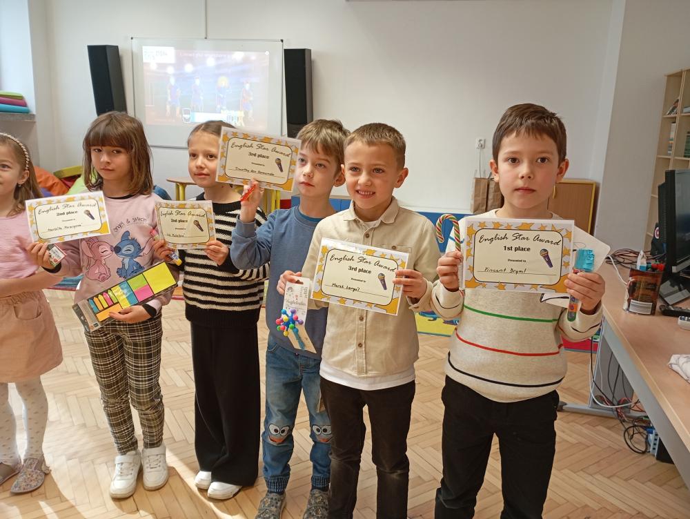 Ve středu 18. 3. jsme pro žáky 1. stupně uspořádaly ve spolupráci se ZŠ Mašovice anglickou soutěž English Star. Celkem se představilo 73 žáků v pěti kategoriích. Děti předvedly scénky, rozhovory, představily své koníčky i zvířata, zazpívaly písničky a nechyběl ani tanec. Za své výkony si zaslouží velkou pochvalu a poděkování za pečlivou přípravu. Velký obdiv patří všem soutěžícím za to, že dokázali překonat trému před porotou i spolužáky. Věříme, že se v tak hojném počtu setkáme i příští rok. Už teď se těšíme na další skvělé výkony, angličtinu, energii i dobrou náladu, která provázela celé středeční dopoledne!