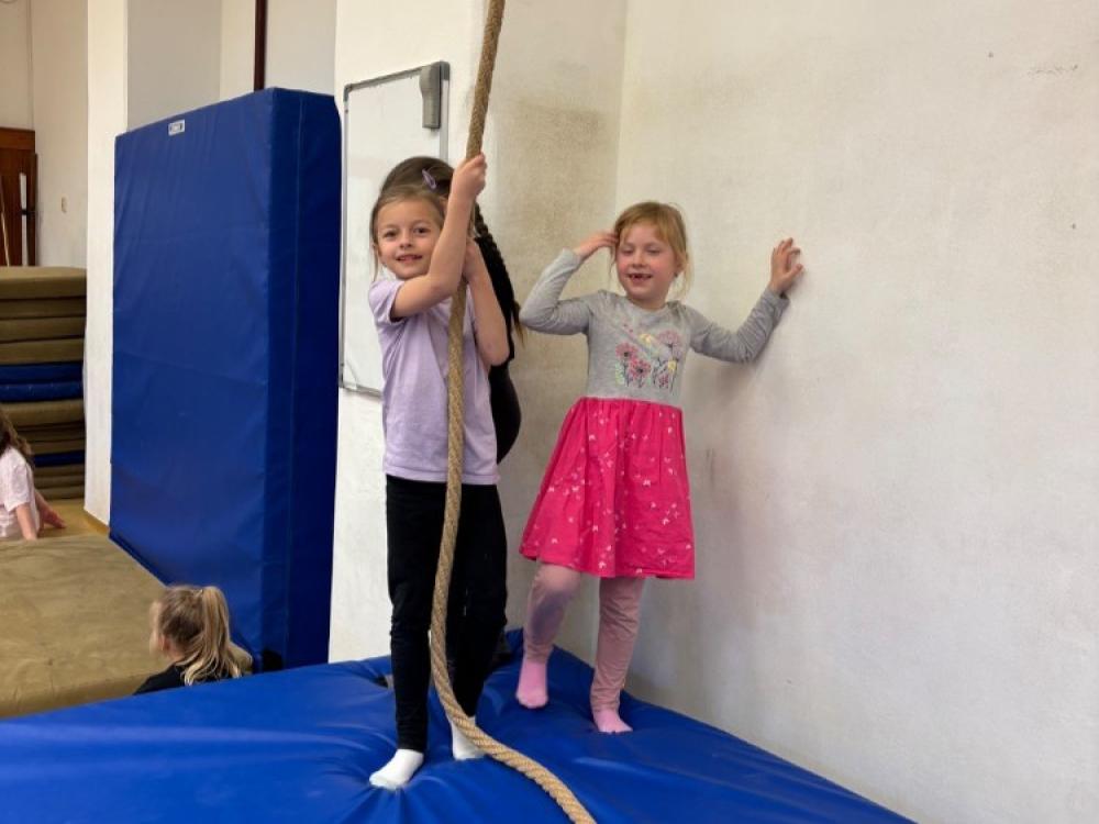 Dnes proběhlo netradiční setkání – náš gymnastický kroužek zavítal do sálu tanečního oboru ZUŠ Znojmo. Cílem bylo propojit dva světy, které mají k sobě velmi blízko. Při společné hodině jsme spojili sílu a akrobacii s výrazem a elegancí. Ukázalo se, že ať už jde o kotoul nebo piruetu, radost z pohybu je jen jedna. Domů jsme odcházeli plní inspirace a nových zážitků.