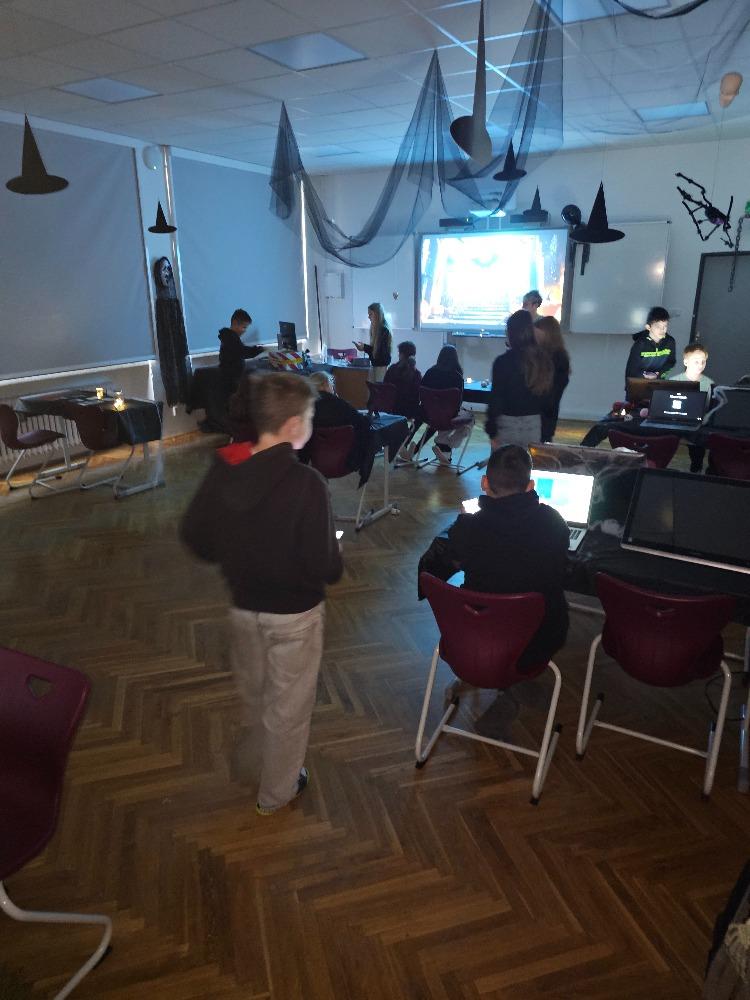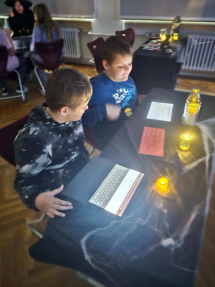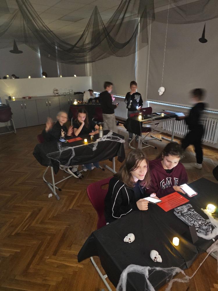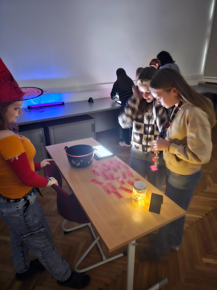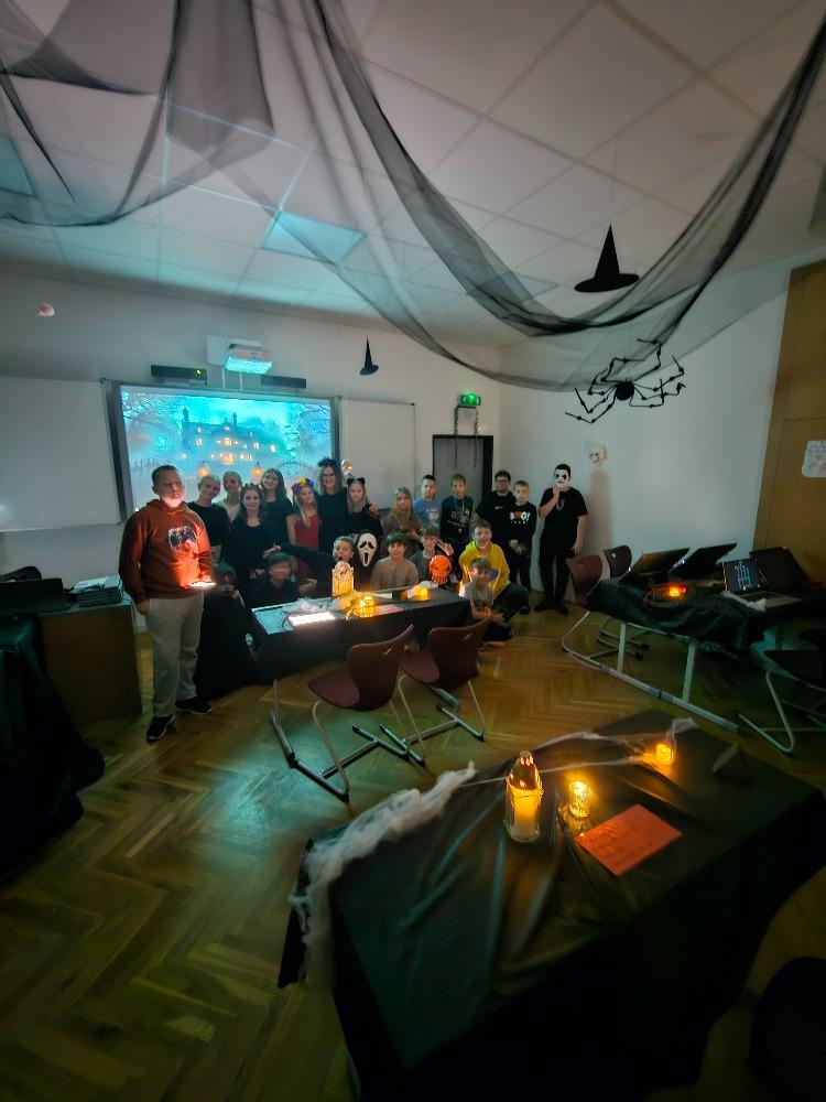 Svátek, který neodmyslitelně patří k anglicky mluvícím zemím a výuce angličtině, to je Halloween. Pro žáky 5.–7. ročníků jsme připravili únikovou hru. Učebna přírodopisu se na dva dny proměnila v čarodějnickou laboratoř s patnácti stanovišti. Děti zde plnily nejrůznější úkoly, míchaly lektvary, ochutnávaly červíky, rozpoznávaly strašidelné zvuky a v nejednom případě musely překonat vlastní strach. Žákům se netradiční hodina velmi líbila a už se těší, co pro ně připravíme příště.