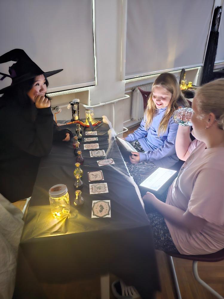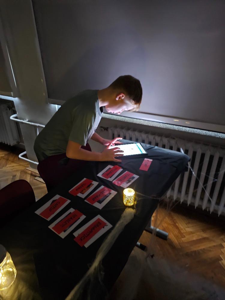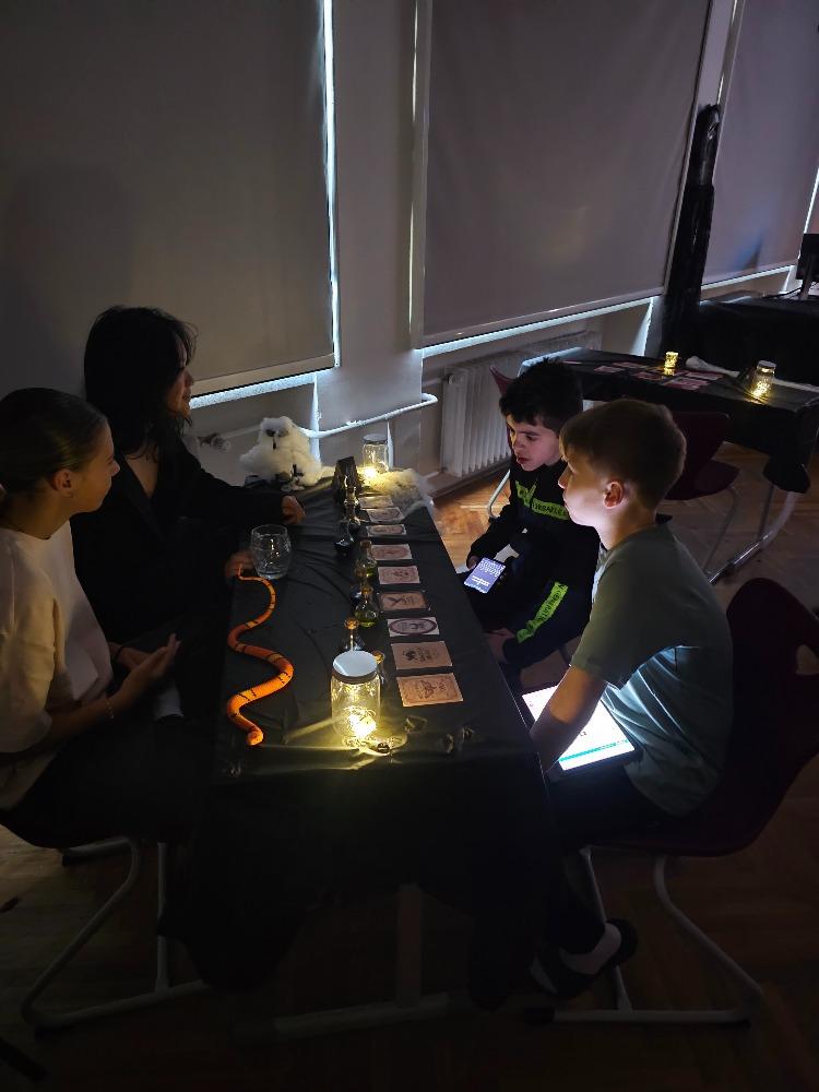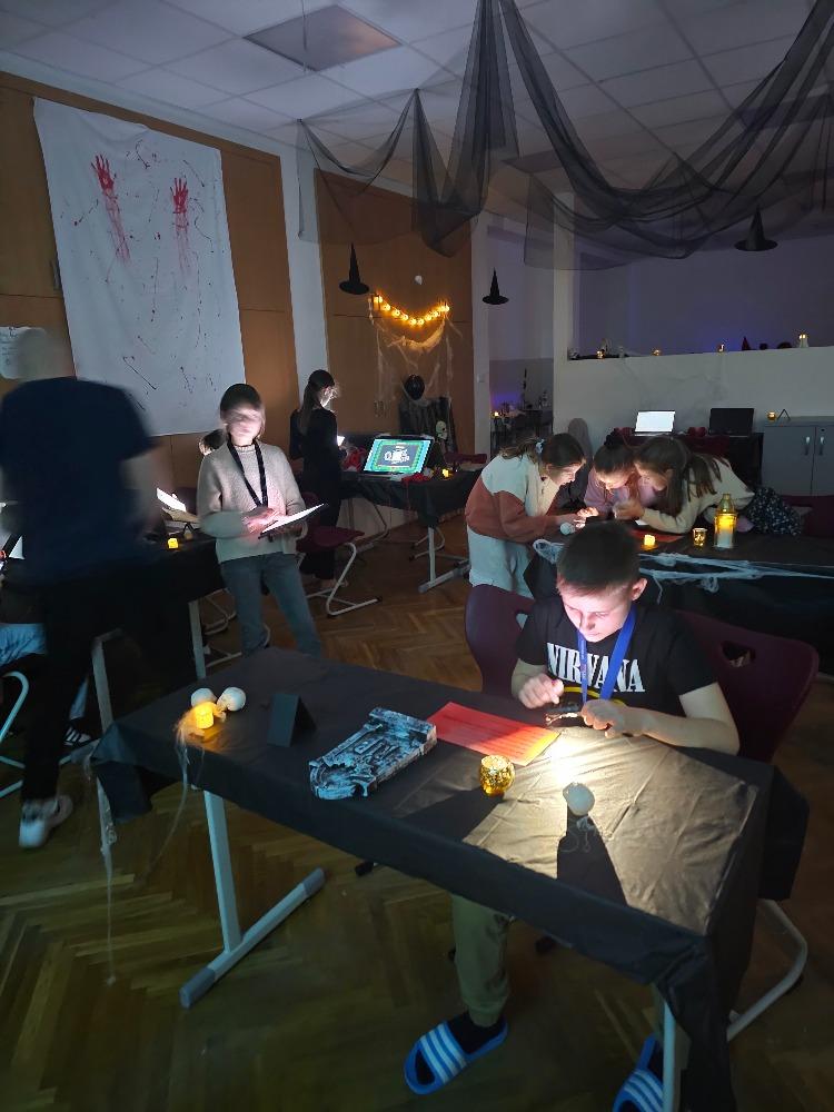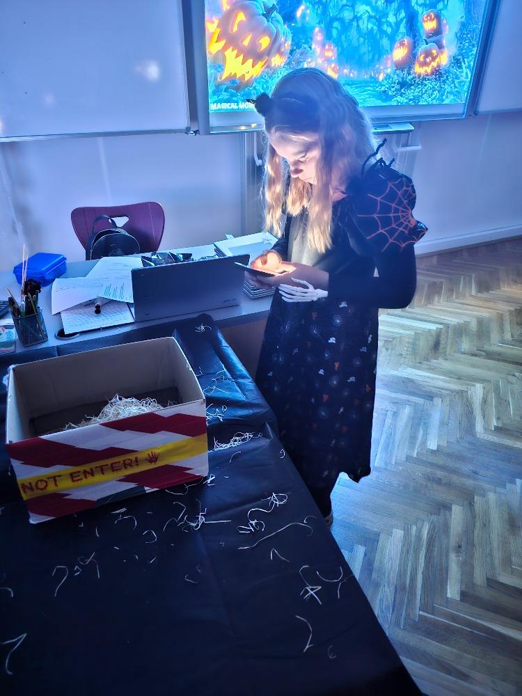 Svátek, který neodmyslitelně patří k anglicky mluvícím zemím a výuce angličtině, to je Halloween. Pro žáky 5.–7. ročníků jsme připravili únikovou hru. Učebna přírodopisu se na dva dny proměnila v čarodějnickou laboratoř s patnácti stanovišti. Děti zde plnily nejrůznější úkoly, míchaly lektvary, ochutnávaly červíky, rozpoznávaly strašidelné zvuky a v nejednom případě musely překonat vlastní strach. Žákům se netradiční hodina velmi líbila a už se těší, co pro ně připravíme příště.