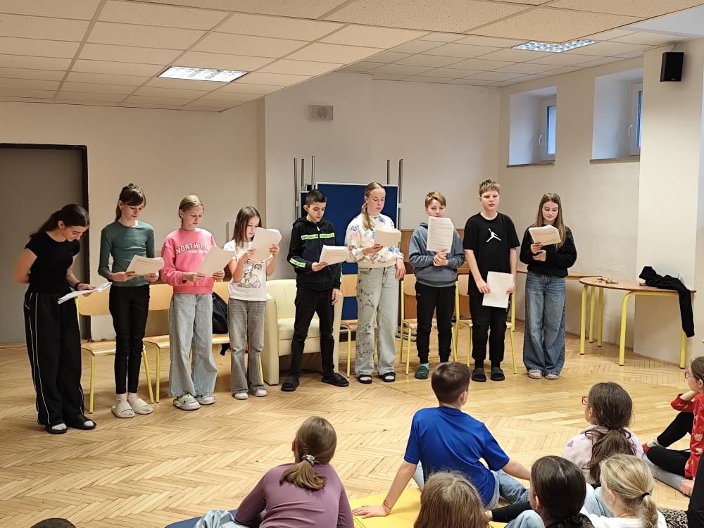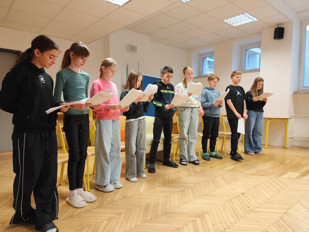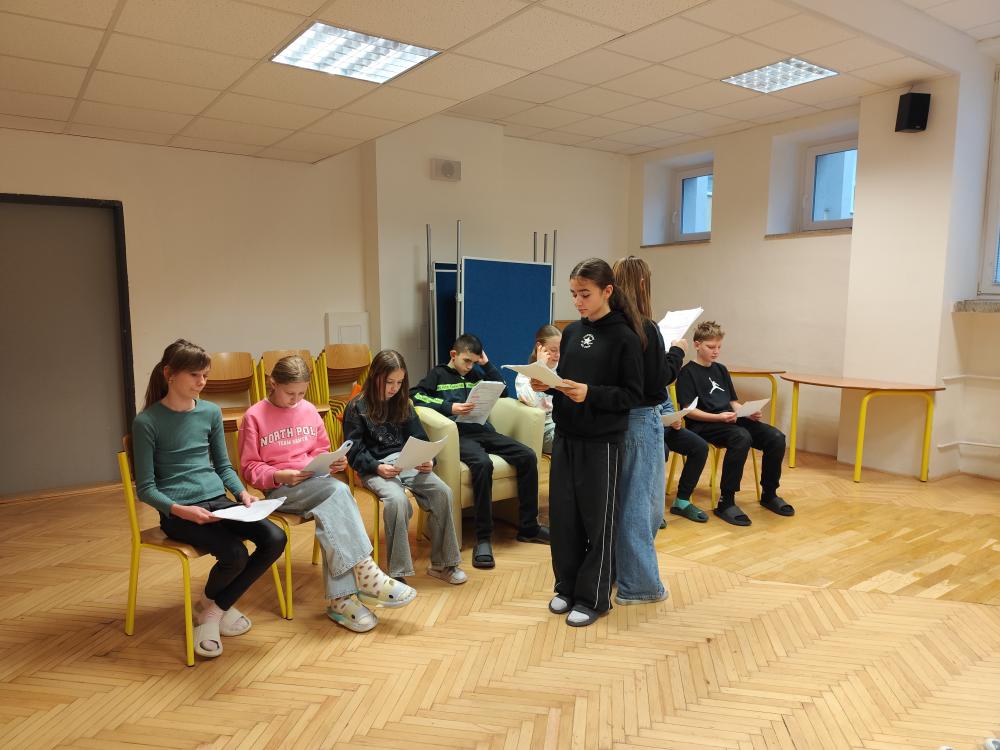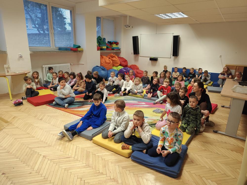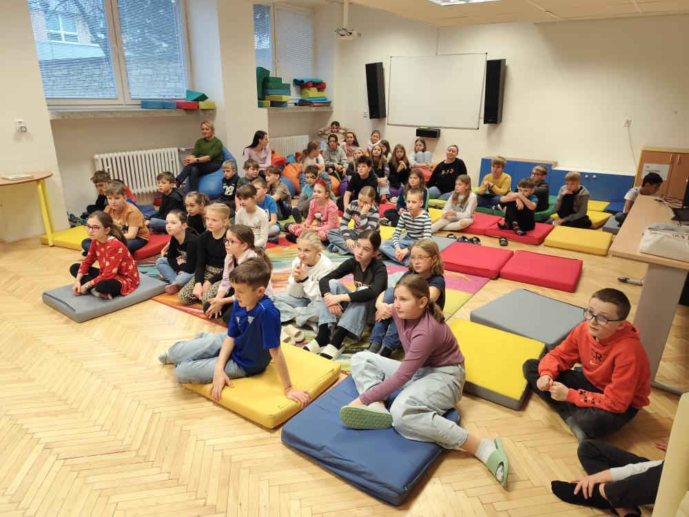 V pondělí 15. prosince se prostor čítárny proměnil v jeviště. Několik židlí, křesel, podsedáků, sedacích vaků, zvědavých diváků a hlavně odvážných herců ze 6. B. Pro své mladší spolužáky z 1. stupně si připravili Werichovu pohádku Fimfárum ve formě scénického čtení. Pohádku jsme přepracovali společnými silami do podoby scénáře, který jsme nastudovali a obohatili o herecké výkony.