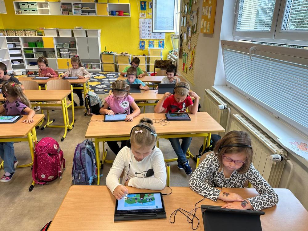 Naše prvňáčky čekalo tento týden netradiční učení – místo sešitů dostali do rukou tablety a vydali se na matematické dobrodružství v rámci projektu Včelka.