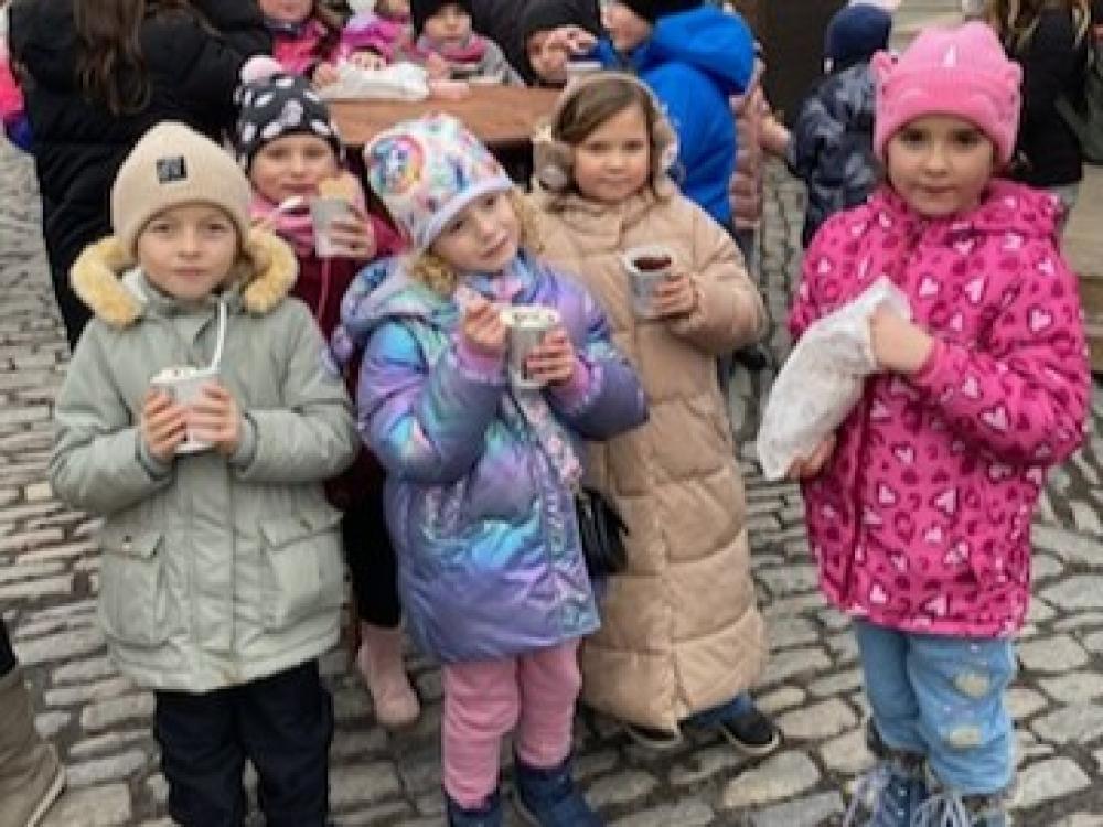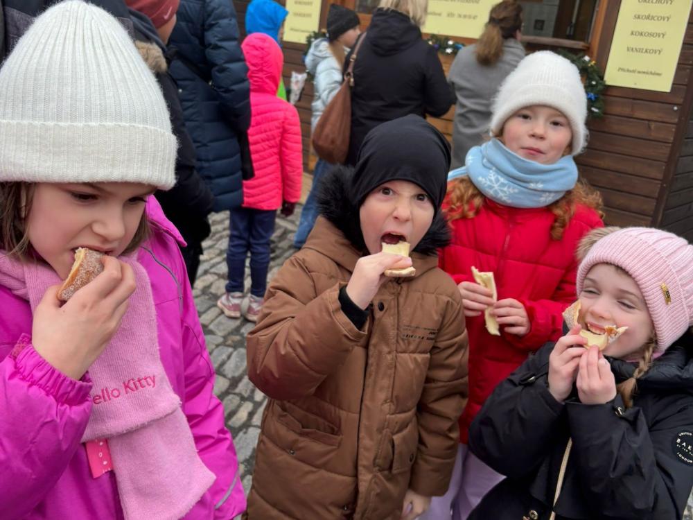 Během procházky jsme navštívili několik znojemských náměstí, která byla krásně vyzdobená. Děti se nadšeně fotily u vánočních dekorací, vánočního kola, adventního věnce, betlému, kopule i u nádherně nazdobeného vánočního stromu se sněhuláky. Nechybělo ani zastavení u vánočních stánků, kde děti ochutnávaly místní dobroty – například trdelník, dětský vánoční punč nebo horký čaj.