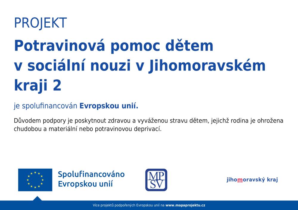 Naše škola se pravidelně zapojuje do projektu Obědy do škol. Hlavním cílem je zajistit dětem ze sociálně a ekonomicky slabých rodin pravidelnou kvalitní stravu ve školních jídelnách mateřských a základních škol (a víceletých gymnáziích) a vypěstovat u nich zdravé stravovací návyky. V letošním školním roce je podpořeno celkem 31 dětí částkou 160 000 Kč.