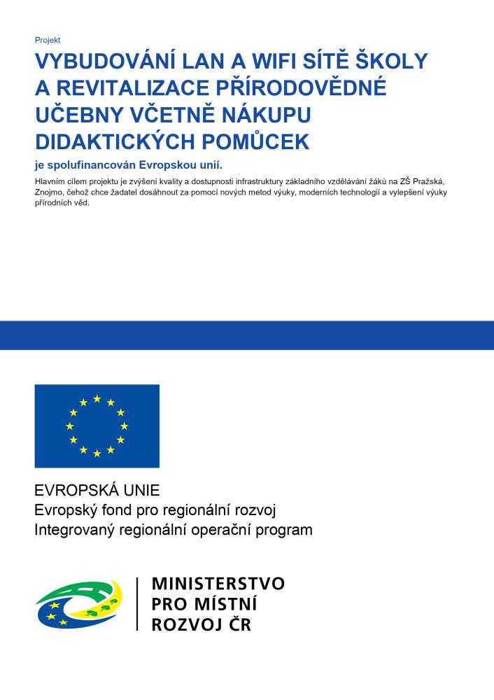Vybudování LAN a WIFI sítě školy a revitalizace přírodovědné učebny včetně nákupu didaktických pomůcek je spolufinancován Evropskou unií.